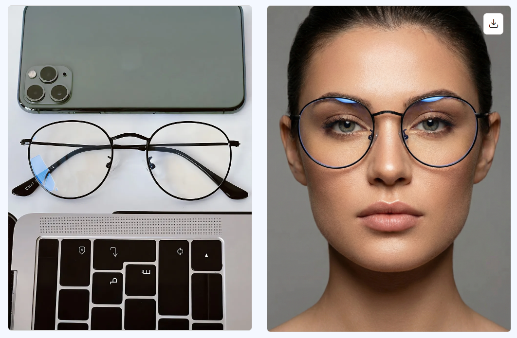 Сделать из исходного фото стильный модельный портрет крупным планом, где главный акцент — лицо в этих очках. Очки оставить такими же (форма, цвет, посадка), изменить только подачу: чистый студийный свет, аккуратная кожа, журнальный fashion-стиль, нейтральный фон. Кадр строго по лицу, без лишних деталей одежды и окружения. Максимально фотореалистично, как фото для бренда оптики.