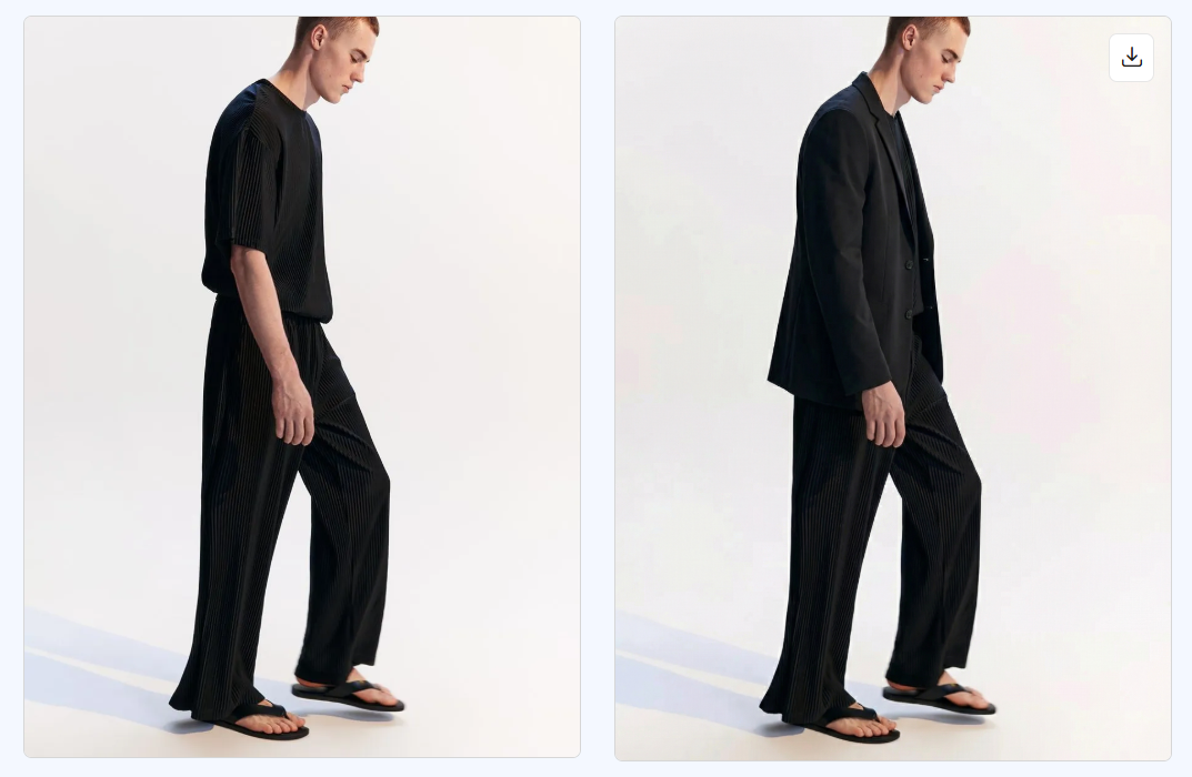 Добавление одежды позволяет изменить стиль человека на фото, создать новый образ, скорректировать визуальную подачу или подготовить несколько вариантов внешнего вида без съемок и примерок. Это удобно для портретов, рекламных материалов, контента и любых задач, где требуется обновленный вид персонажа.