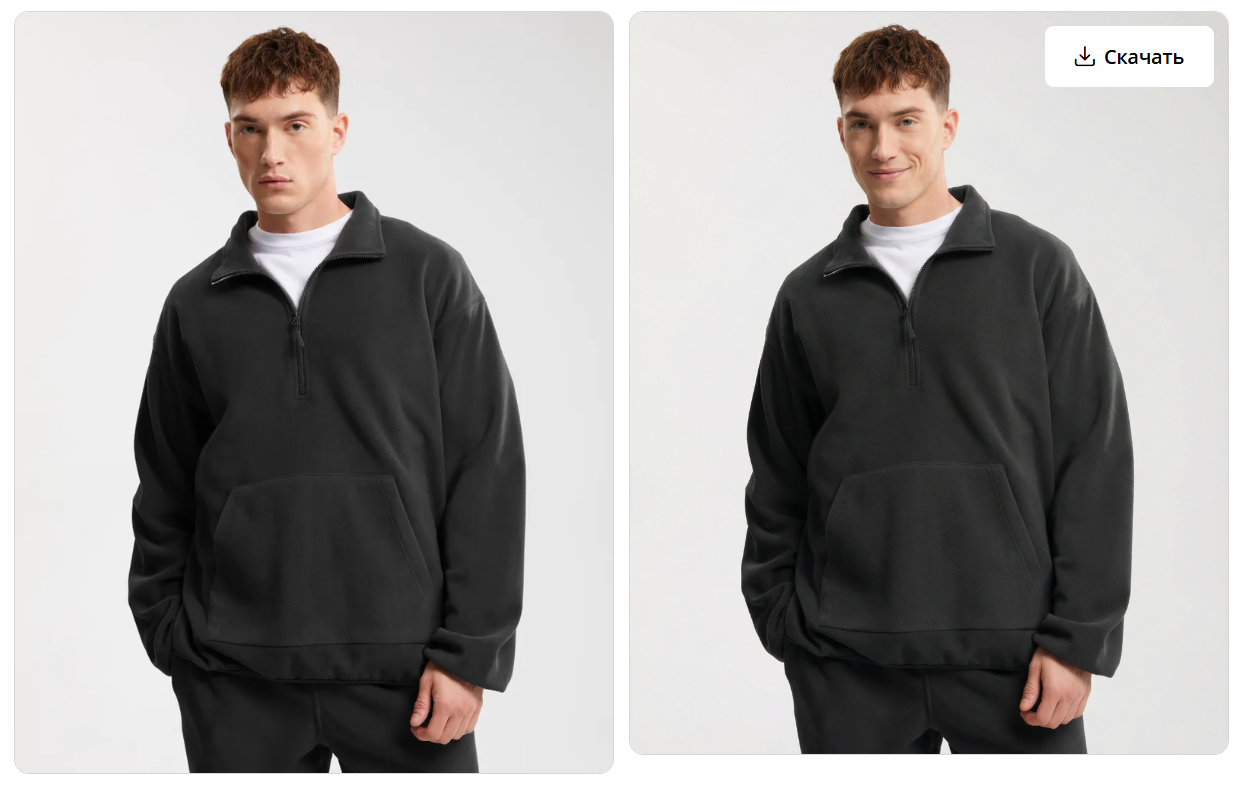 Выражение лица сильно влияет на впечатление от фотографии. Улыбка помогает сделать образ более дружелюбным, естественным и подходящим для коммерческой подачи. Если на исходном фото человек выглядит слишком серьёзно или нейтрально, можно добавить аккуратную естественную улыбку с помощью нейросети.