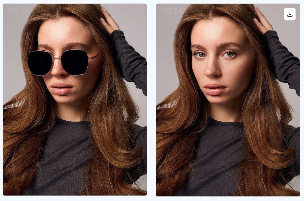Инструмент удаляет любые виды очков и восстанавливает естественный вид лица.
