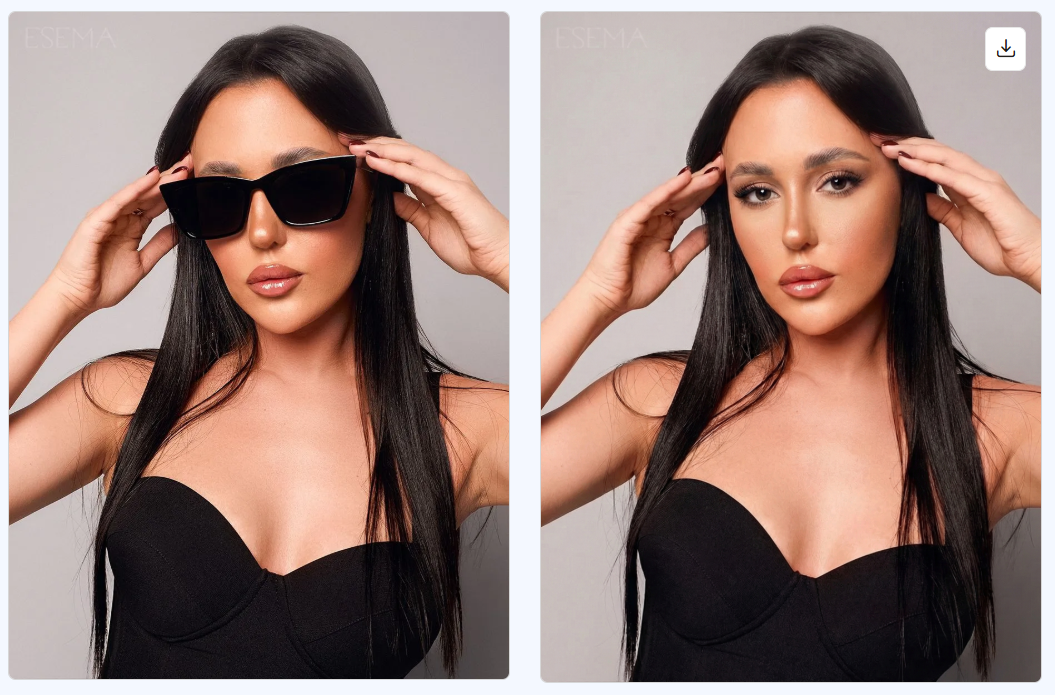 Очки иногда искажают образ, закрывают глаза, создают блики или просто не подходят под задачу изображения. Убрать их вручную сложно: нужно восстанавливать глаза, брови, тени и структуру лица. Нейросеть делает это автоматически и аккуратно.