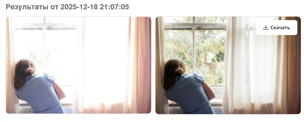 Инструмент формирует ровное изображение без пересветов и артефактов, сохраняя естественный вид фотографии.