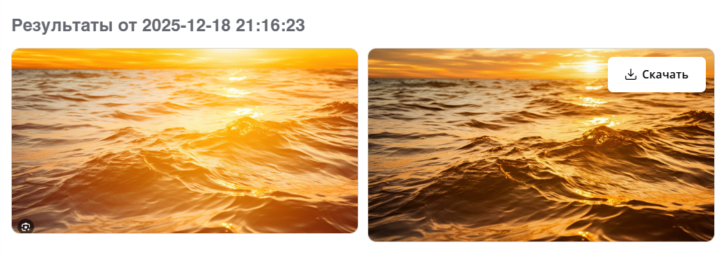 Убери засвет на фото с морем. Восстанови естественное освещение неба и воды, детали в светлых участках, глубину цвета и текстуру волн. Сохрани линию горизонта, композицию, атмосферу и пропорции без изменений. Итог должен выглядеть естественно, без лишнего контраста и артефактов.