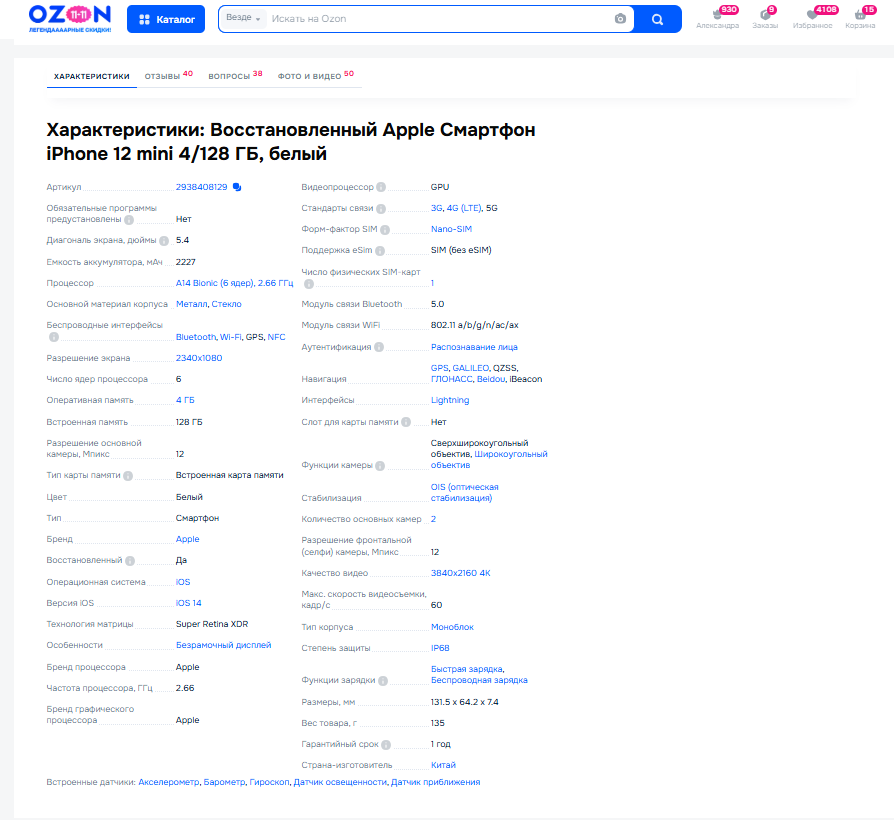 ✅Характеристики: все атрибуты заполнены точно и корректно.