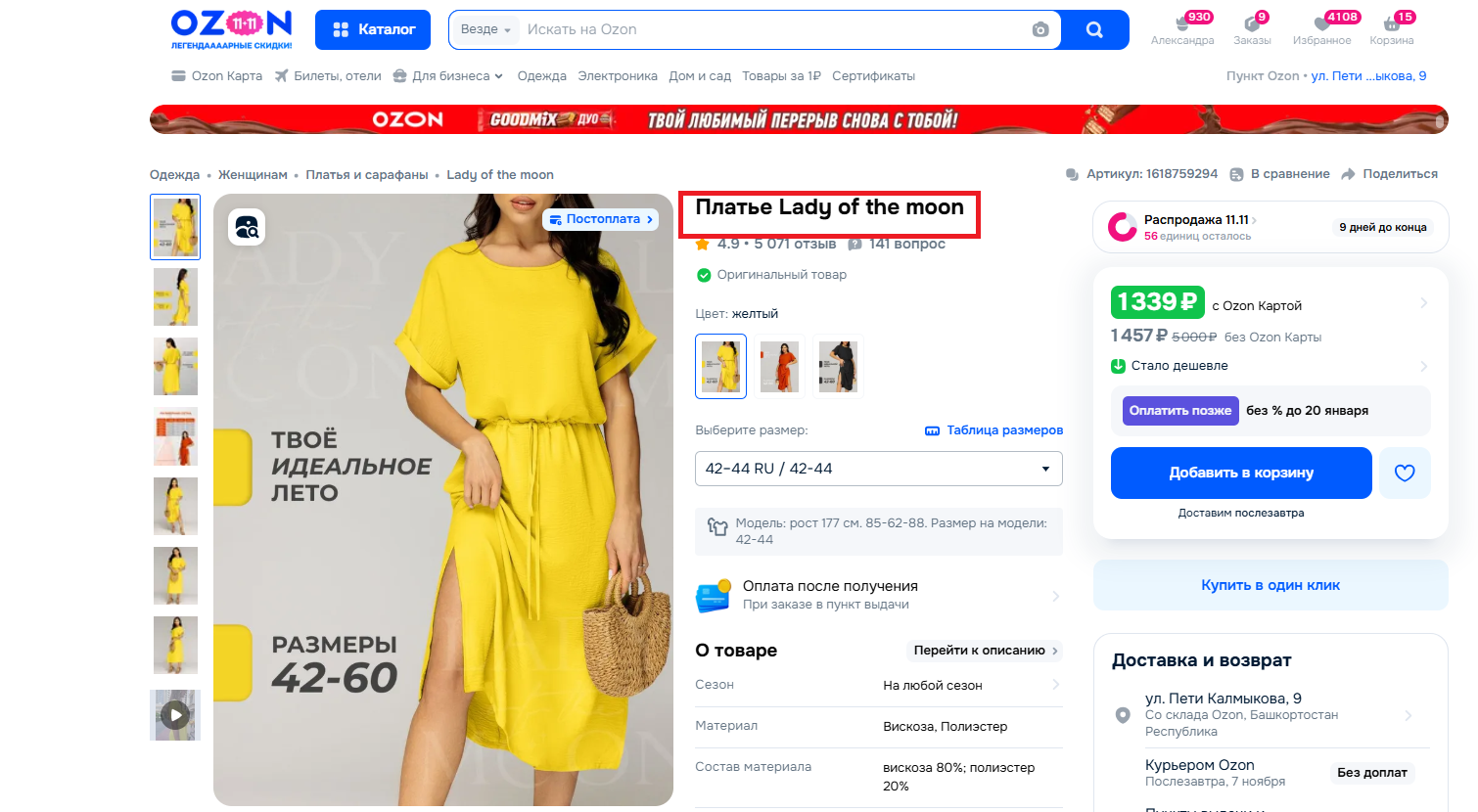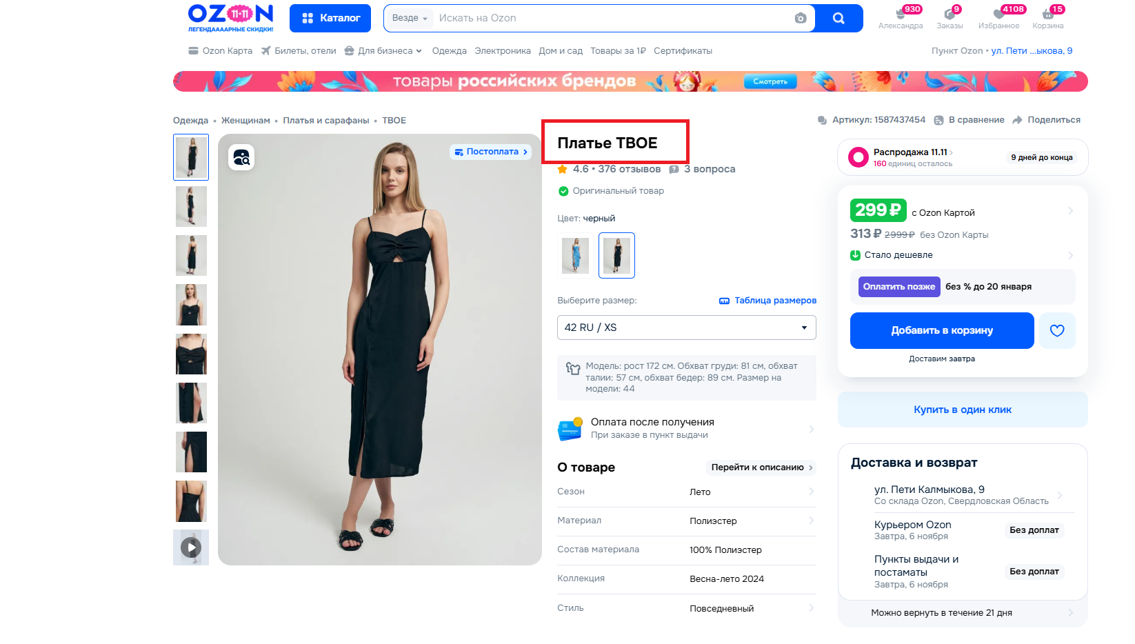 Многие продавцы одежды стали указывать в названии формулу: <Товар> + <Бренд>. И это реально работает (см. примеры товаров из ТОПа по запросу <платье летнее миди>):