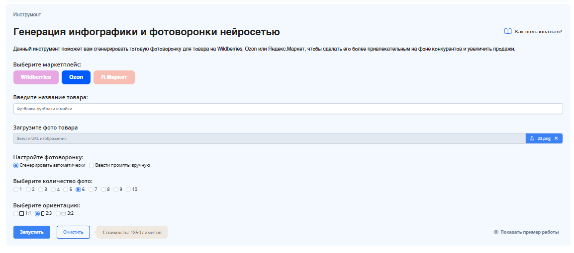 - Генератор описаний и инфографики — создавайте SEO-оптимизированный контент с помощью нейросети за пару кликов.