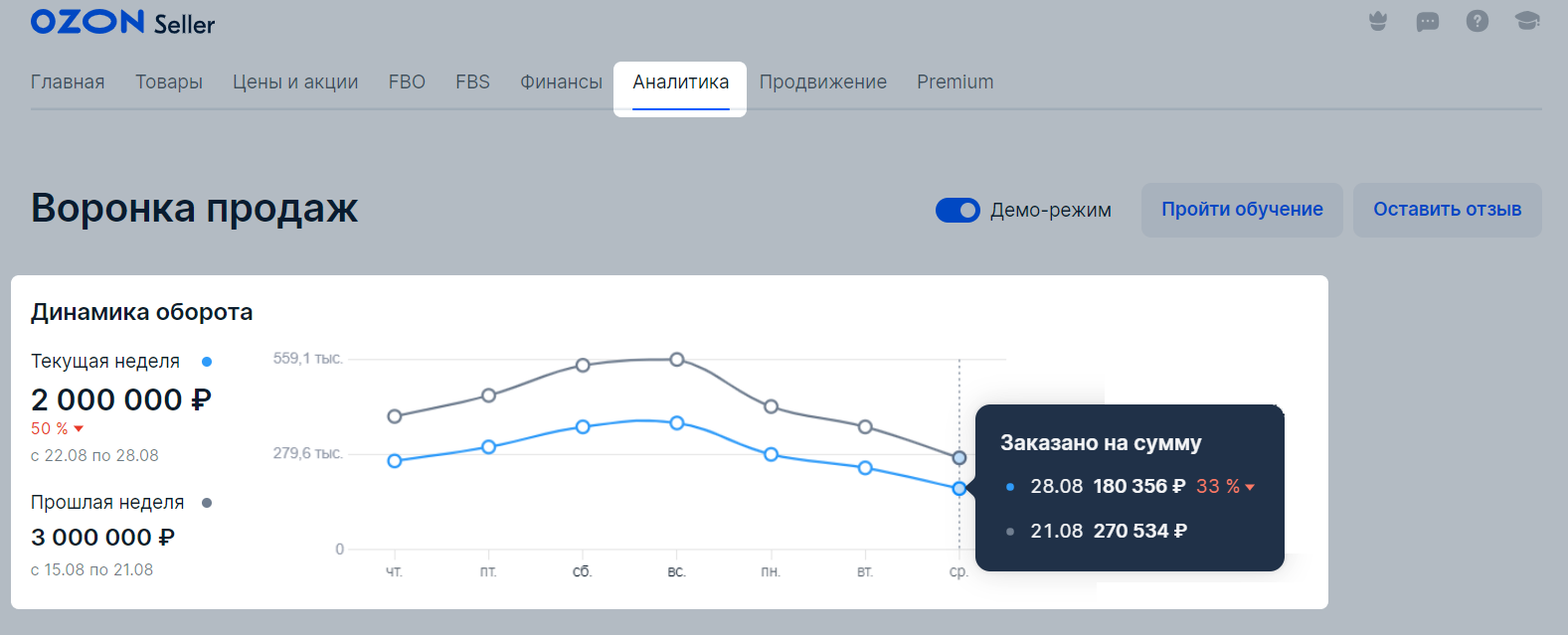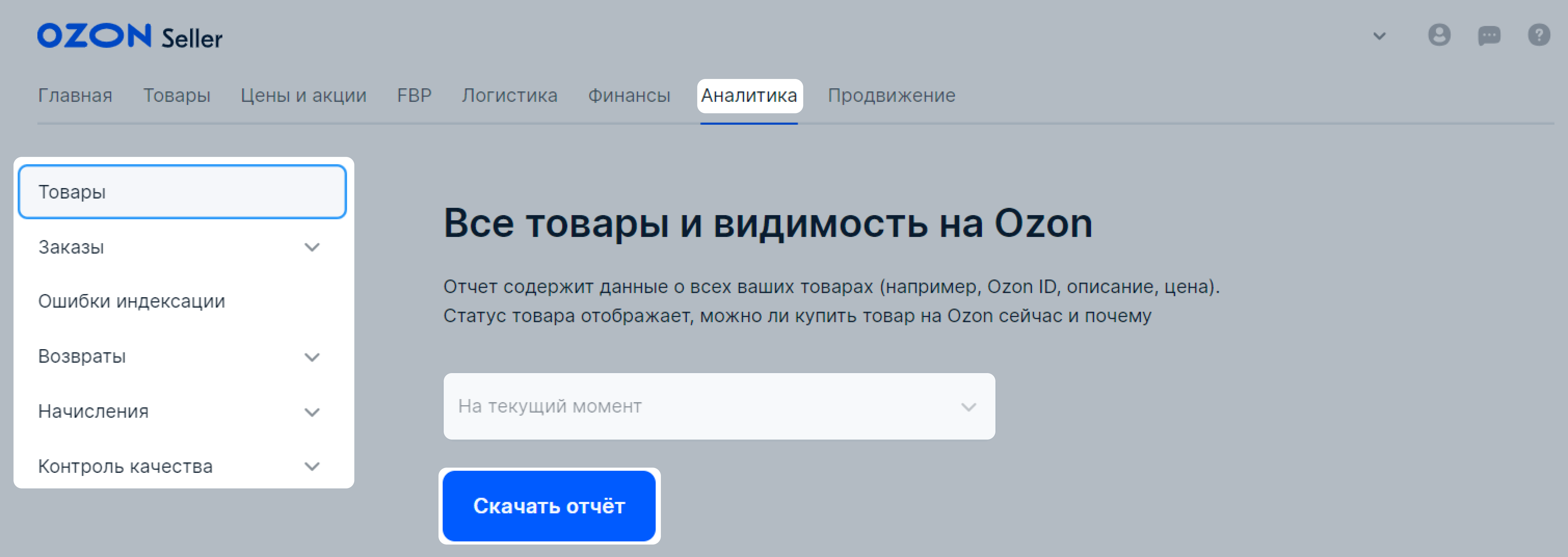 Встроенная аналитика ЛК Ozon предоставляет все необходимое для комплексного аудита.