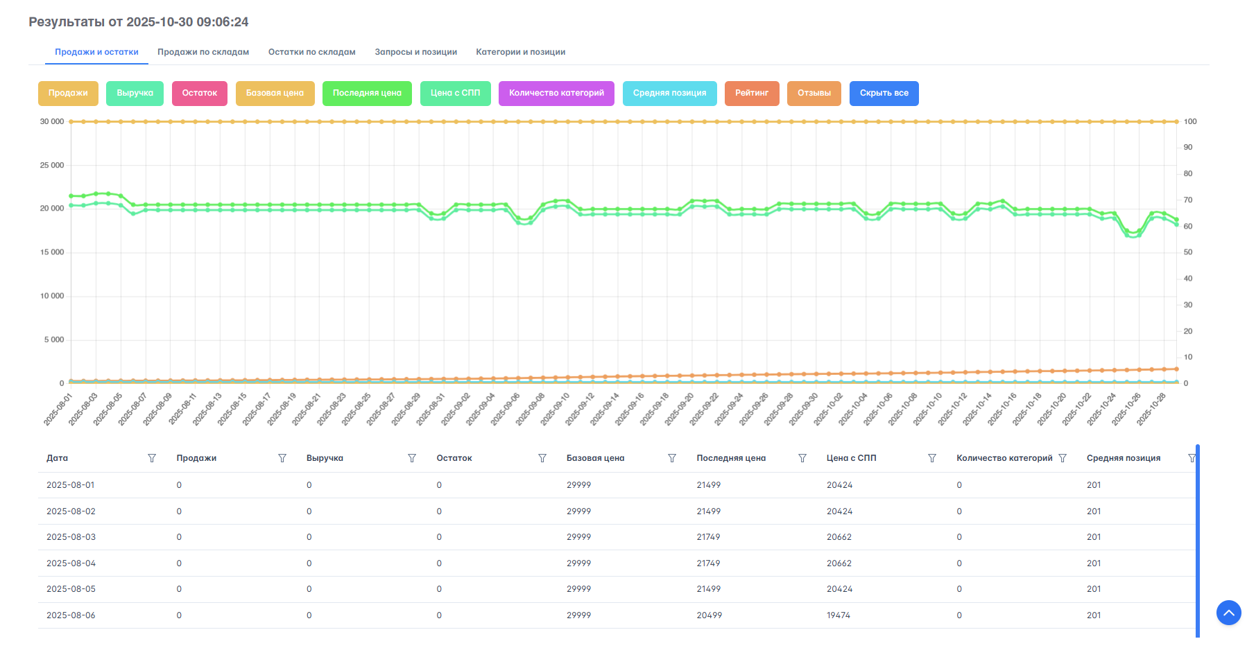 Рекомендация: проводите проверку позиций еженедельно для ключевых товаров и ежемесячно — для всей товарной матрицы. Подробнее об инструменте читайте тут.