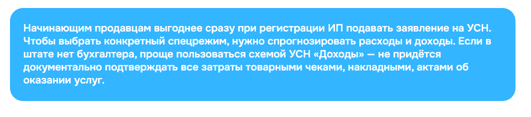 - Самозанятость — хороша только на старте. Годовой лимит доходов составляет 2,4 млн рублей, чего для активных продаж может оказаться недостаточно. Кроме того, вы не сможете нанимать сотрудников, а ваш ассортимент будет ограничен товарами собственного производства.