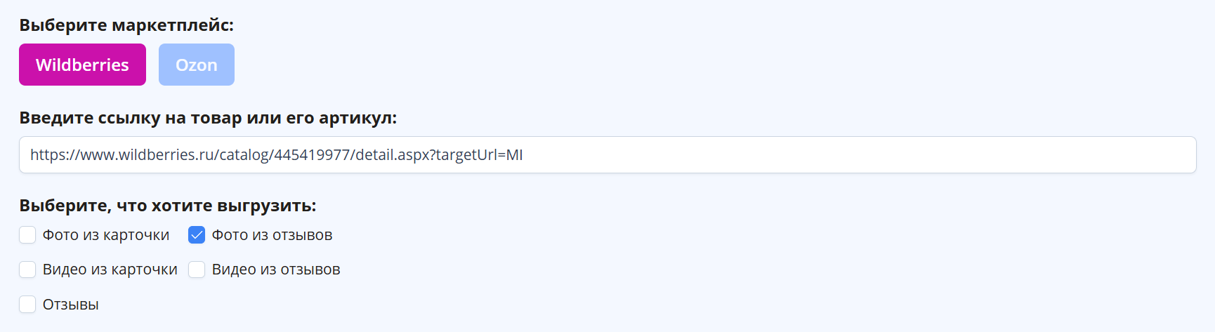 Вы можете выгружать любые данные с карточек товаров на Wildberries и Ozon. Перейдите на нужную страницу, чтобы узнать подробности:
