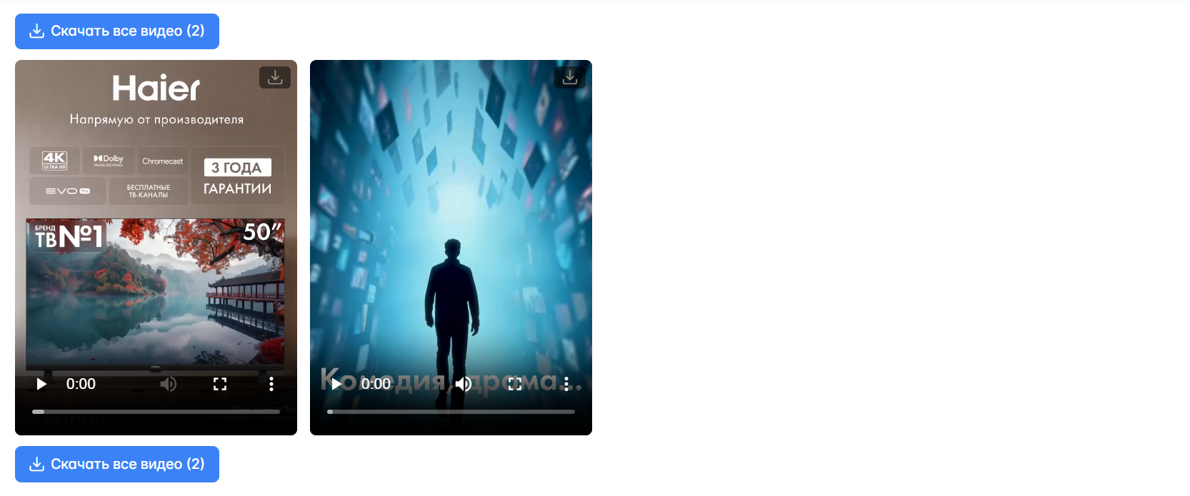 Все ролики собираются автоматически и доступны для скачивания.
