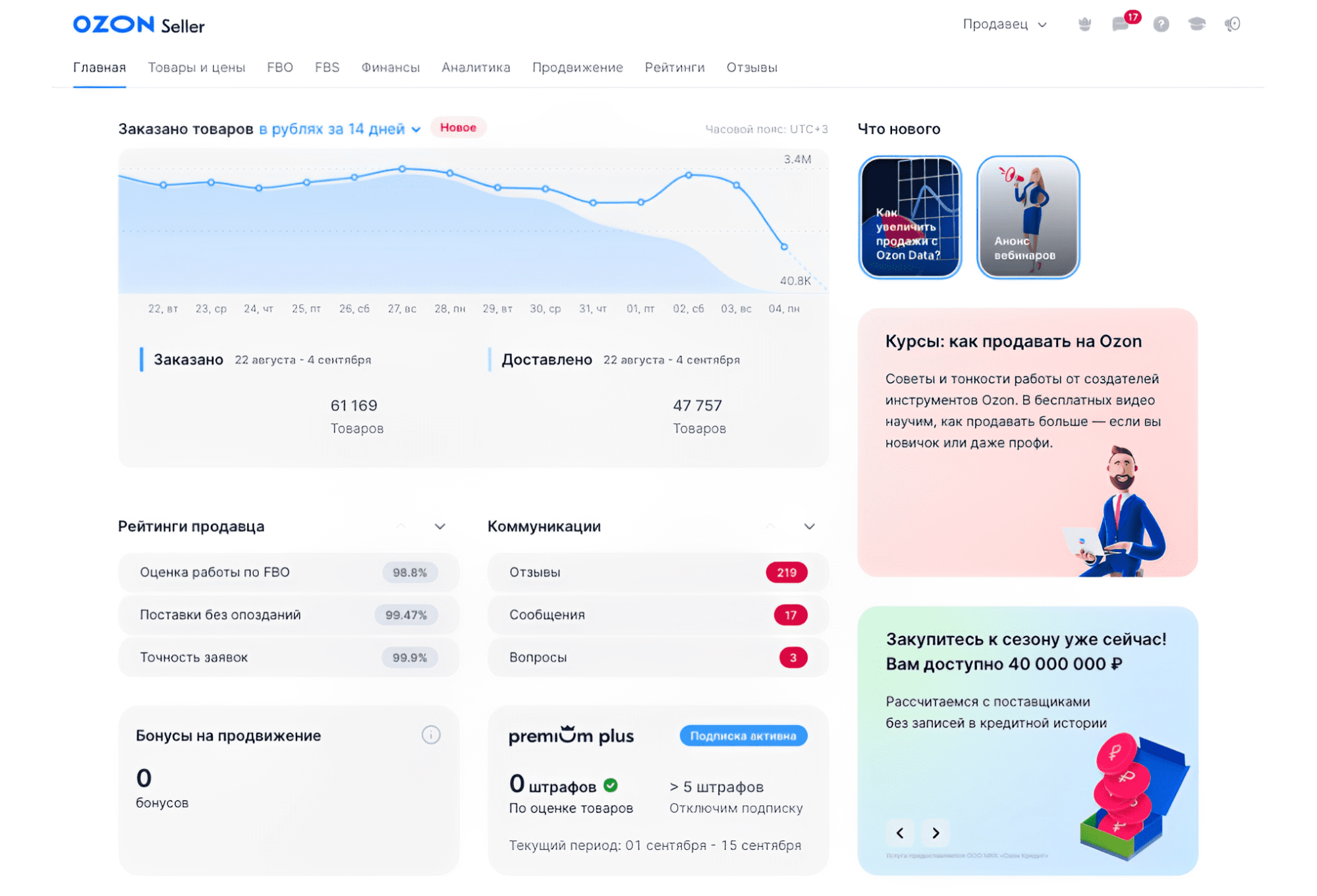 - Логистику / склад. Управление остатками, планирование поставок на разные склады Ozon для ускорения доставки, снижения расходов.