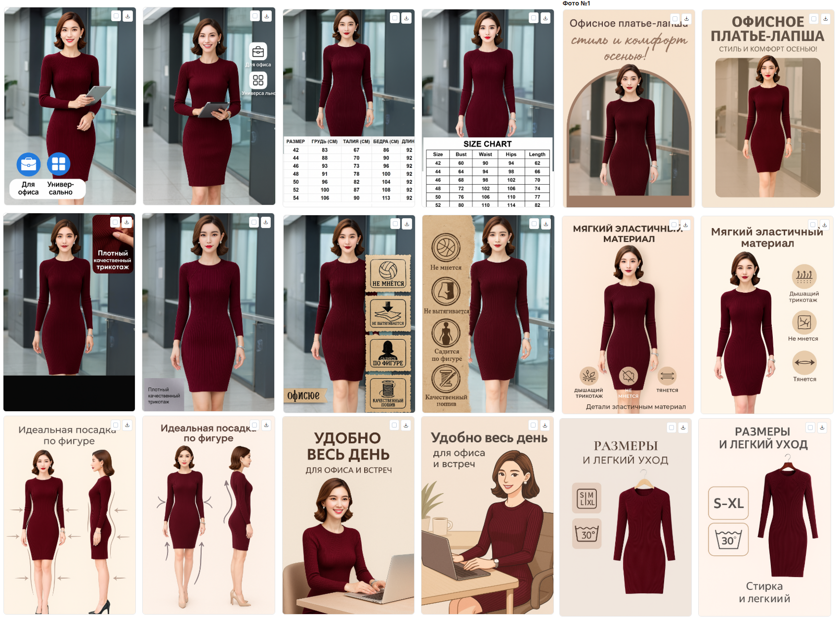 Для создания профессионального визуала без углубленных знаний в графических редакторах можно использовать нейросети. Например, инструмент «Генерация инфографики и фотоворонки» от SELLER MOON позволяет создать полный комплект слайдов для карточки.