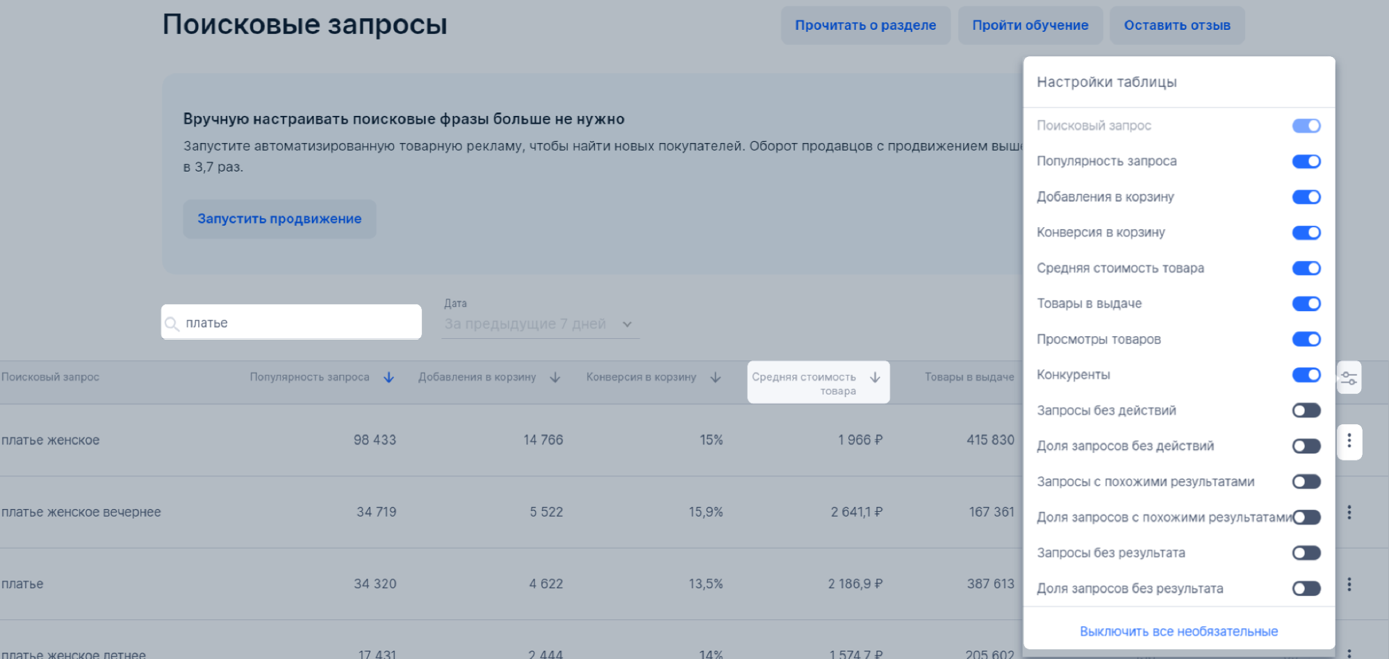 - Настройка / оптимизация внутренних рекламных инструментов Ozon.
