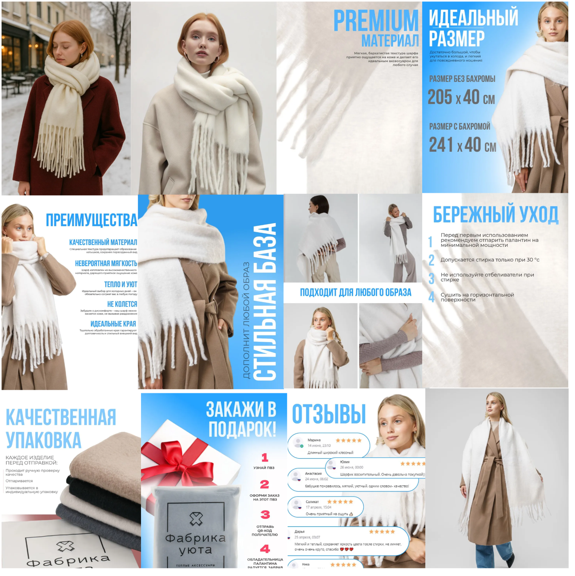 - Название — главный SEO-элемент. Формула: Бренд + Категория + Ключевые характеристики + Важный атрибут. Избегайте слов «топ», «супер» — алгоритмы их не любят. Пример: <Шарф длинный Max Mara 9Max Мара>.