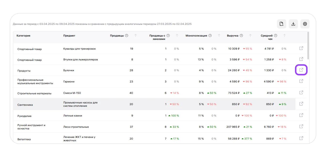 После активации «Продвинутого» тарифа продавец получает доступ ко всем столбцам и расширенным данным по предметам в выбранных категориях.