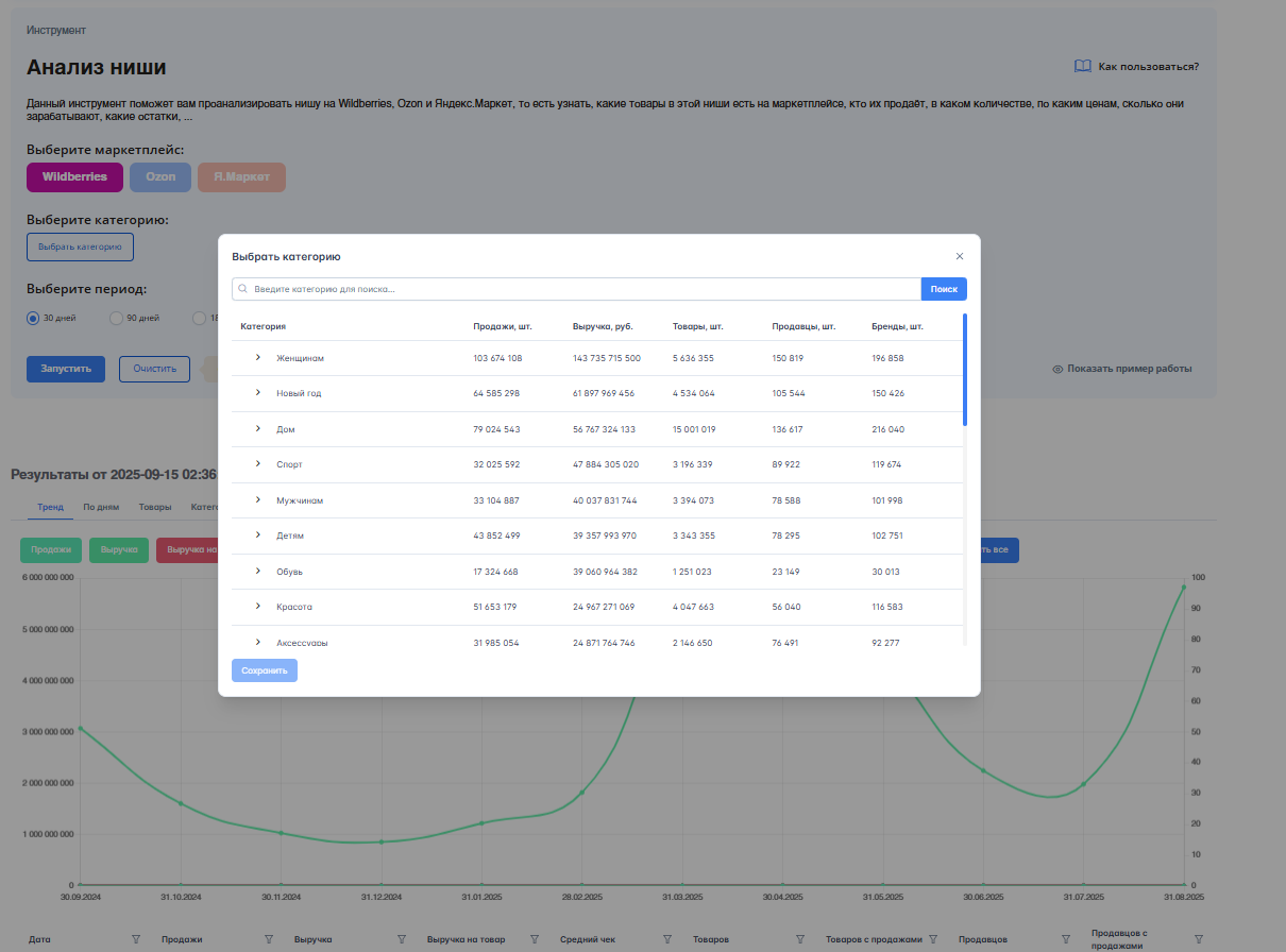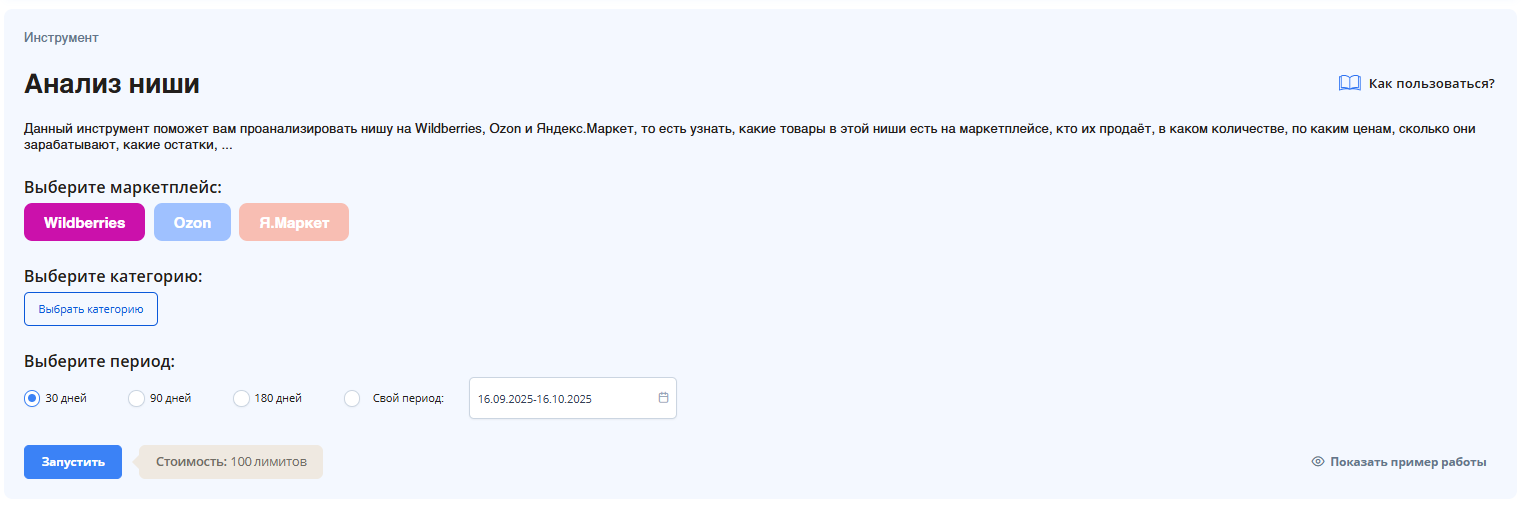 - Отчет «Анализ ниш» в ЛК WB (базовая версия).
