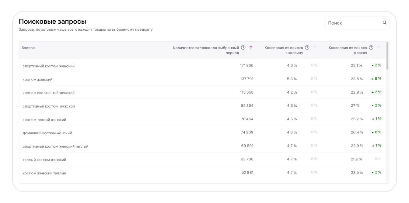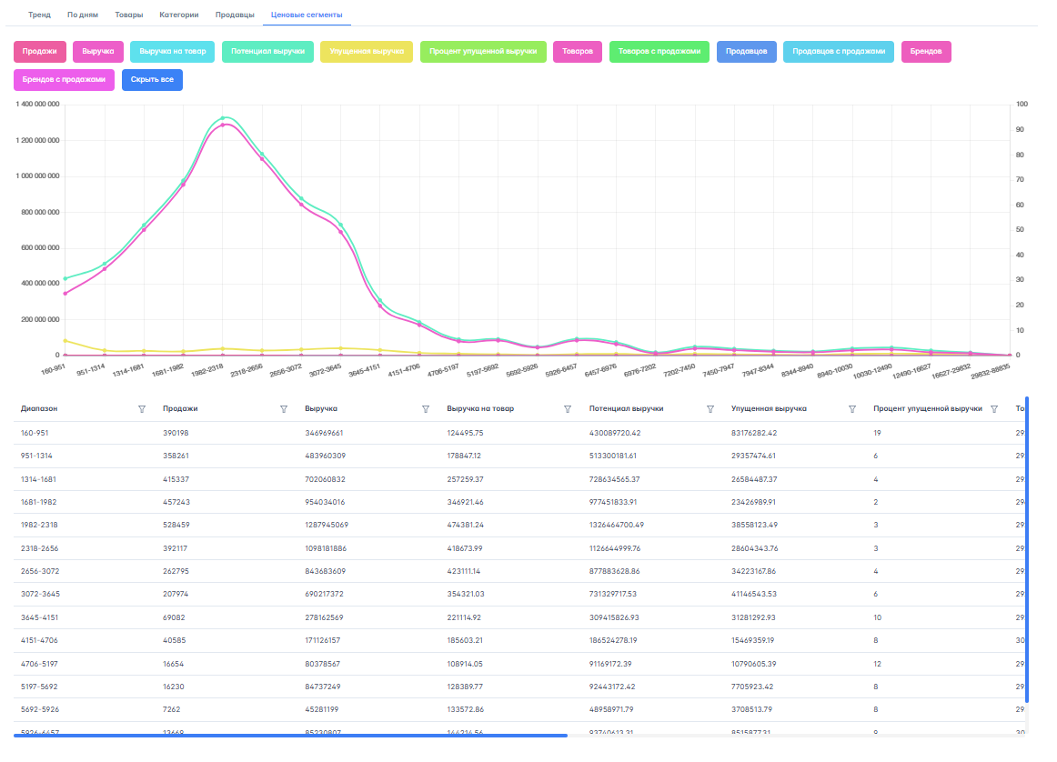 - Поисковые запросы и ценовые сегменты.
