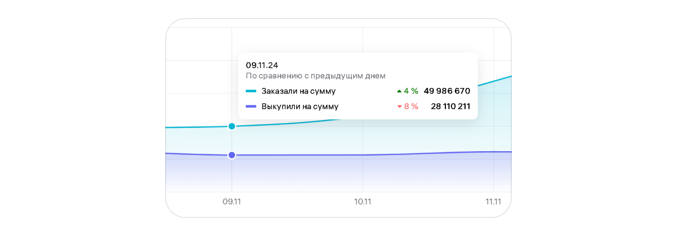- Что показывает: долю выкупленных заказов.
