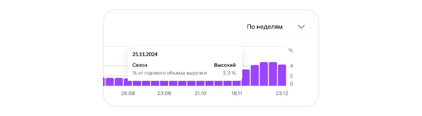 - Анализ сезонности за два года — позволяет прогнозировать спрос.