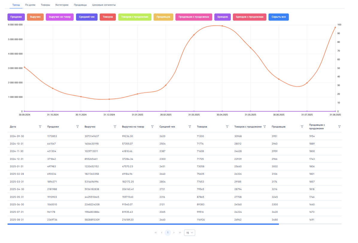 - Детализированные данные по каждому товару.