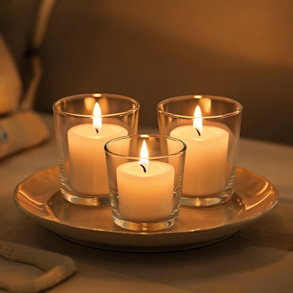 Общее описание: набор для дома в стеклянных подставках, предназначен для постоянного использования, долго горит, безопасен, экономичен. Идеально для домашнего уюта или праздников.