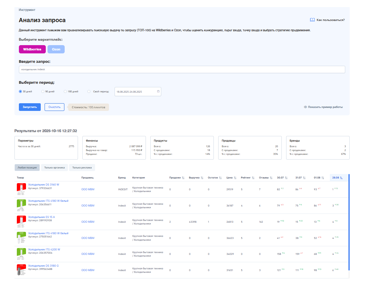 Это ваш цифровой щит от невыгодных вложений. Всего за две минуты вы получите полную картину по любому поисковому запросу на Wildberries: