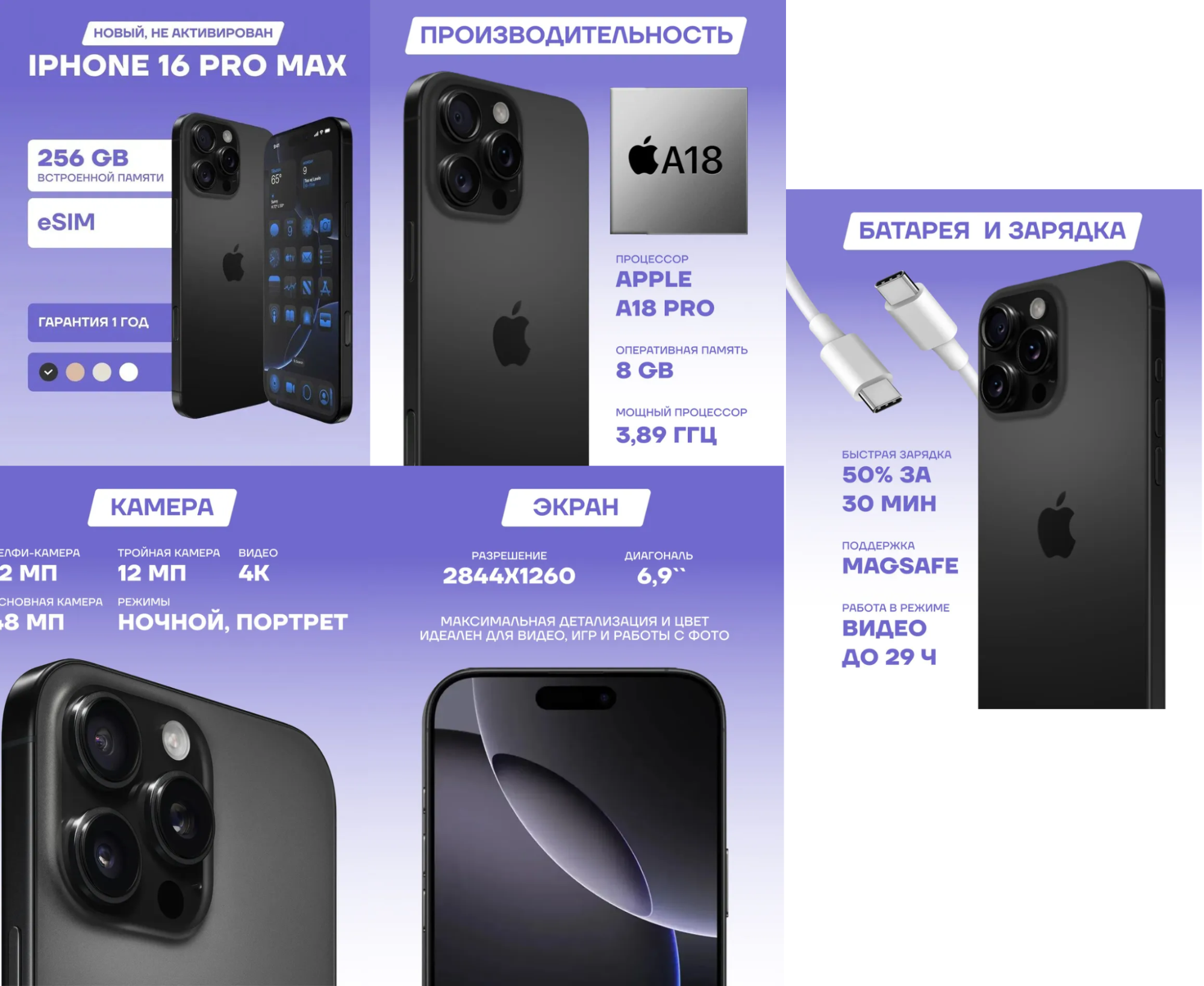 Пример качественного визуала в карточке iPhone 16 Pro Max на OZON: