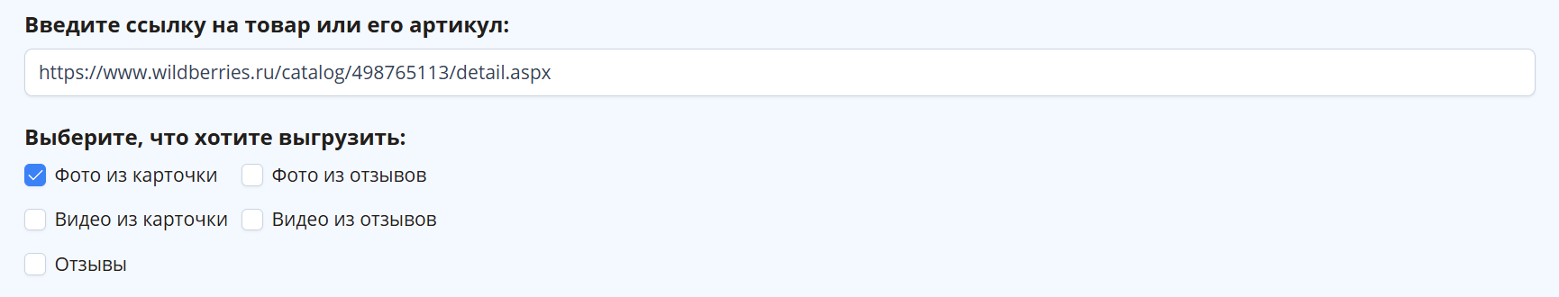 Онлайн-инструмент позволяет быстро выгрузить картинки из карточки товара на WB.