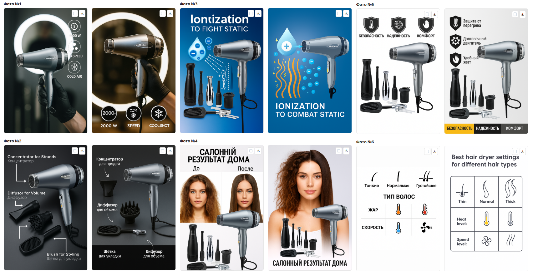 - Первое изображение: Самый важный план товара и 3-5 ключевых преимущества. Его цель — зацепить и побудить к клику.