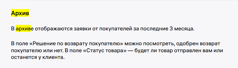 - Оперативно проверяйте вкладку «На рассмотрении» (Товары → Возвраты). Не забывайте про лимит в 5 дней.