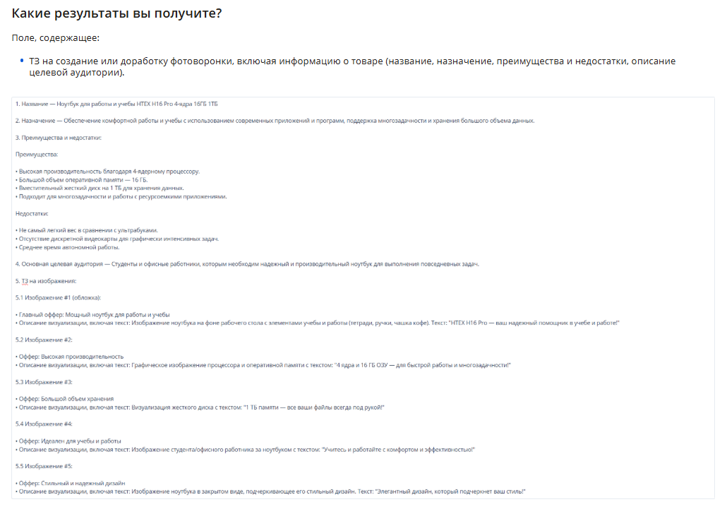 - Генерация описания нейросетью — быстро создайте структурированное, полное SEO-описание, ничего не упустив.