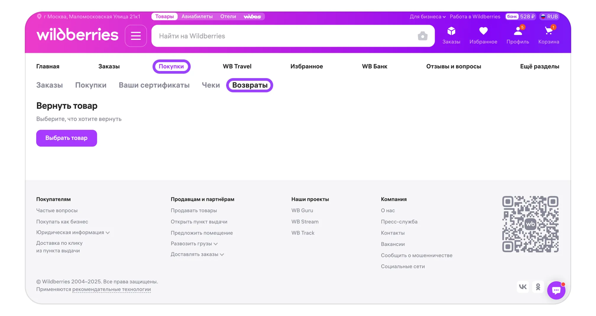 Путь в Личном кабинете WB: Товары → Возвраты товаров покупателям. Здесь вы найдете все текущие запросы. Не забывайте этот путь — он ваш главный инструмент в работе по этому направлению.