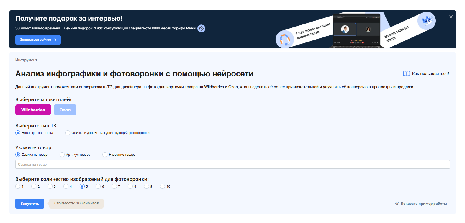 - Выберите количество изображений (оптимально 5-7 штук).