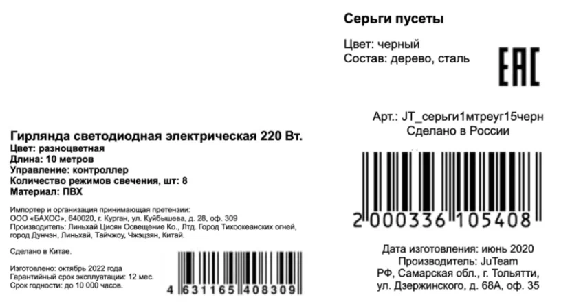 - Маркировку «Честный знак» (для подлежащих маркировке).