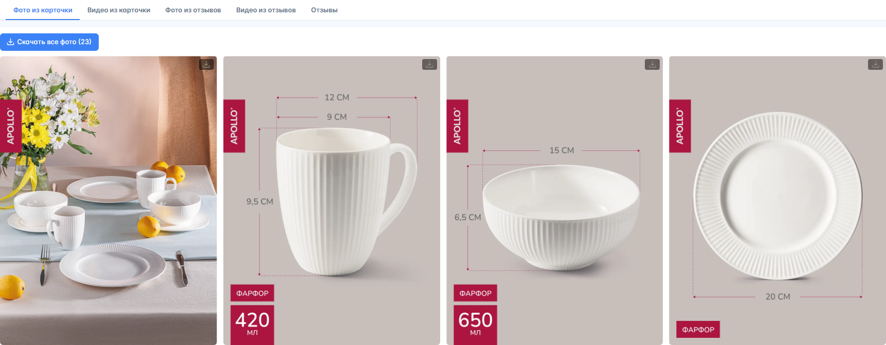 - Анализ своей карточки: просмотрите выгруженные фото, видео и отзывы и оцените, насколько ваши материалы убедительны. Достаточно ли фотографий? Понятна ли инфографика? Что покупатели хвалят, а на что жалуются? Это поможет увидеть слабые места, которые тормозят продажи.